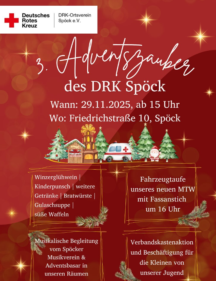 Kommt vorbei, genießt den Adventszauber und startet gemeinsam mit dem DRK Spöck in die schönste Zeit des Jahres!