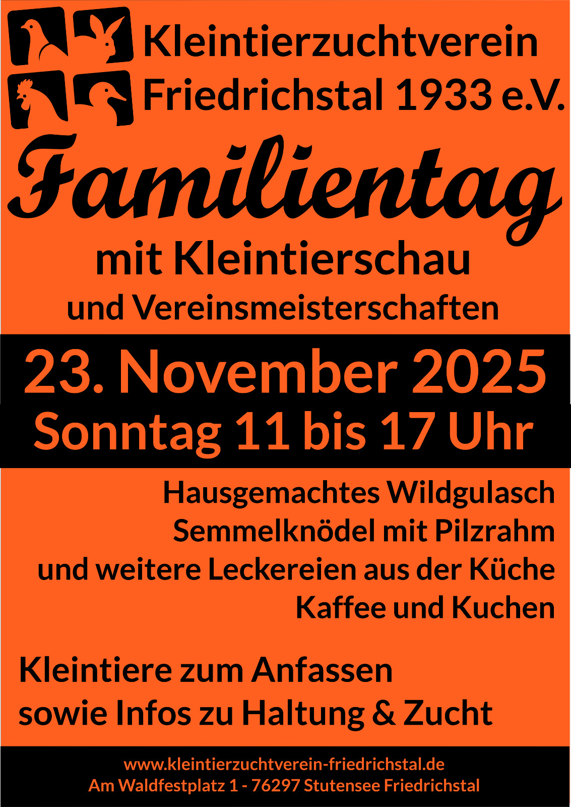 Ein schöner Tag für die ganze Familie erwartet euch beim Familientag des Kleintierzuchtvereins Friedrichstal.