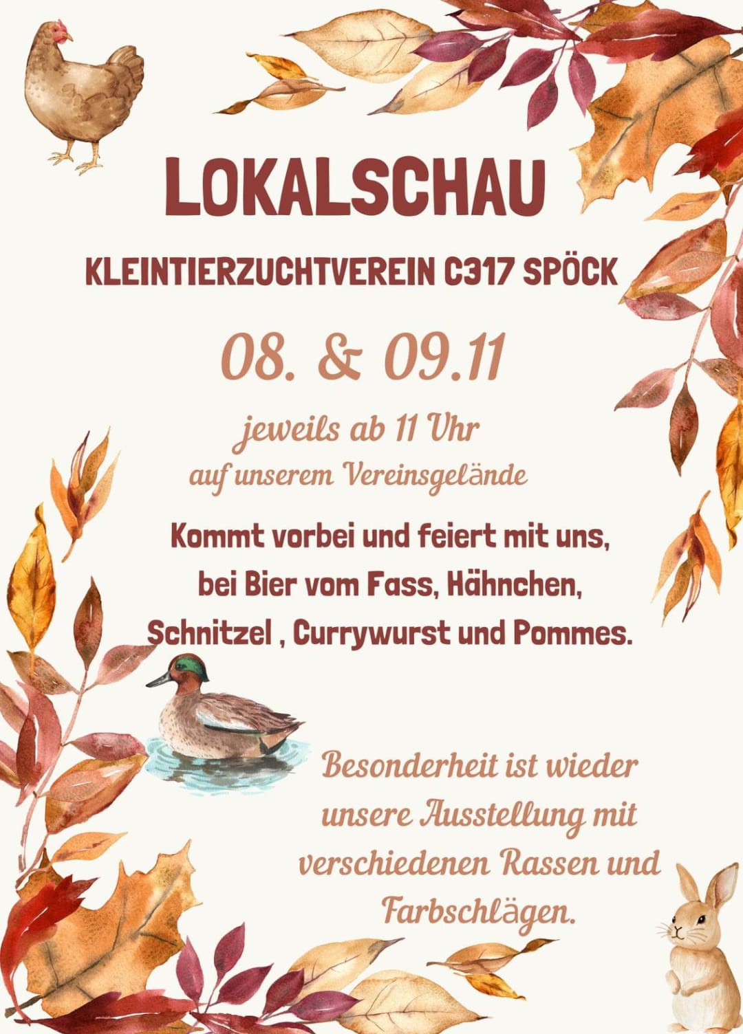 Kommt vorbei, genießt die gemütliche Atmosphäre und entdeckt die Vielfalt der Kleintierzucht in Spöck.